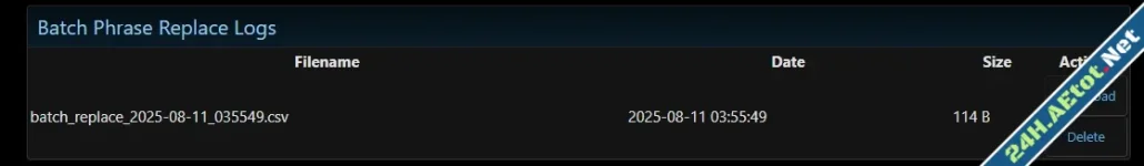 - CSV log of changes saved to /internal_data/batch_phrase_replace/.